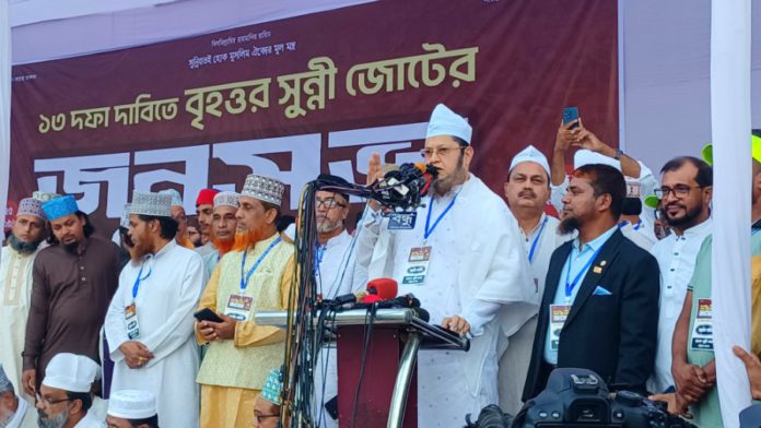 জোটভূক্ত তিন দলের চেয়ারম্যান-মহাসচিবগণ জনসভায় বক্তব্য রাখেন। জনসভায় সুন্নী জোট ঘোষিত ১৩ দফা দাবিনামা উপস্থাপন করা হয়।
