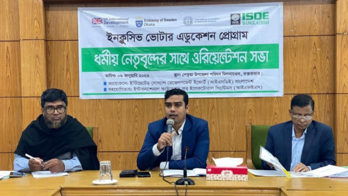 উল্লেখ্য, আইএসডিই কক্সবাজার জেলার চকরিয়া, পেকুয়া ও মহেশখালী উপজেলায় অন্তর্ভুক্তিমূলক ভোটার এডুকেশন প্রোগ্রামের আওতায় বিভিন্ন সচেতনতামূলক কার্যক্রম বাস্তবায়ন করছে, যার লক্ষ্য একটি গণতান্ত্রিক, শান্তিপূর্ণ ও অংশগ্রহণমূলক নির্বাচন নিশ্চিত করা।