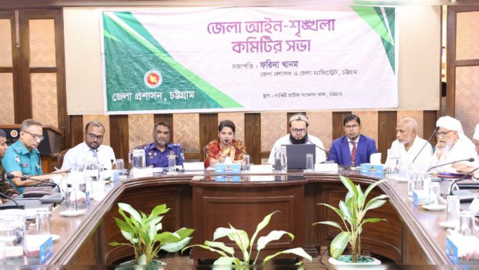 চট্টগ্রাম জেলা আইন-শৃঙ্খলা কমিটির সভা অনুষ্ঠিত হয়েছে। আজ রবিবার (১৪ সেপ্টেম্বর) নগরীর সার্কিট হাউস সম্মেলন কক্ষে চট্টগ্রাম জেলা প্রশাসক ও জেলা ম্যাজিস্ট্রেট ফরিদা খানমের সভাপতিত্বে সভাটি অনুষ্ঠিত হয়।