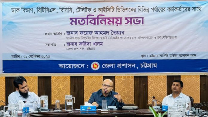 শনিবার চট্টগ্রাম সার্কিট হাউজ সম্মেলন কক্ষে ডাক বিভাগ, বিটিসিএল, টেলিটক ও আইসিটি ডিভিশনের কর্মকর্তাদের সঙ্গে মতবিনিময় সভায় প্রধান অতিথির বক্তব্যে তিনি এসব কথা বলেন।