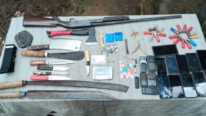 এসময় তার ঘরে তল্লাশি চালিয়ে ১টি রাইফেল, ৩টি রাইফেল এ্যামুনেশন, ৬ টি পিস্তলের এ্যামুনেশন, ৭টি বন্দুকের কার্তুজ, ১১ টি ব্ল্যাংক কার্তুজ, ১৬ টি মোবাইল ফোন, ১টি চাইনিজ কুড়াল, ২টি পাহাড়ি দা, ৭টি ছোট-বড় চাকু, ১টি চেইনসহ তার ব্যবহৃত ইয়াবা, মদ, গাজা উদ্ধার করে।