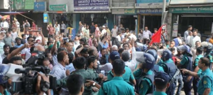 পুলিশের সঙ্গে বাকবিতণ্ডার একপর্যায়ে শ্রমিক নেতারা কর্মসূচি শেষের ঘোষণা দেন।