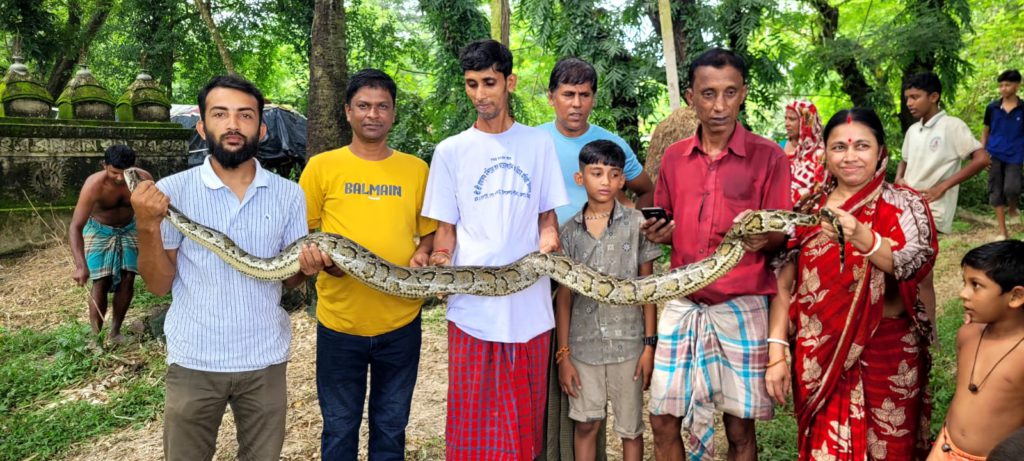বোয়ালখালীতে মাছ ধরার ফাঁদে ধরা পড়ল অজগর, পরে উদ্ধার